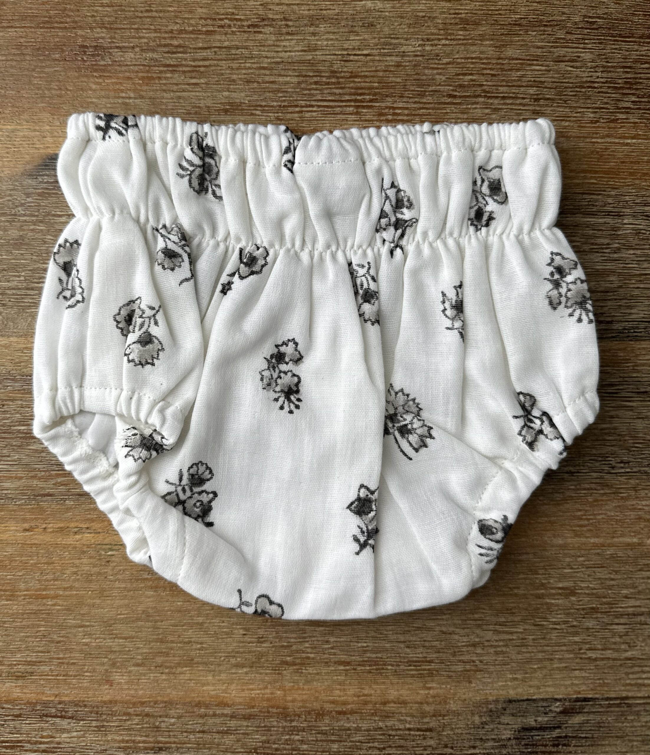 El estampado exclusivo en tonos neutros le da un toque atemporal, perfecto para cualquier ocasión. El cubrepañal Begonia está forrado de tela de algodón y lleva elásticos de baja presión para que no apriete los muslitos del bebé.